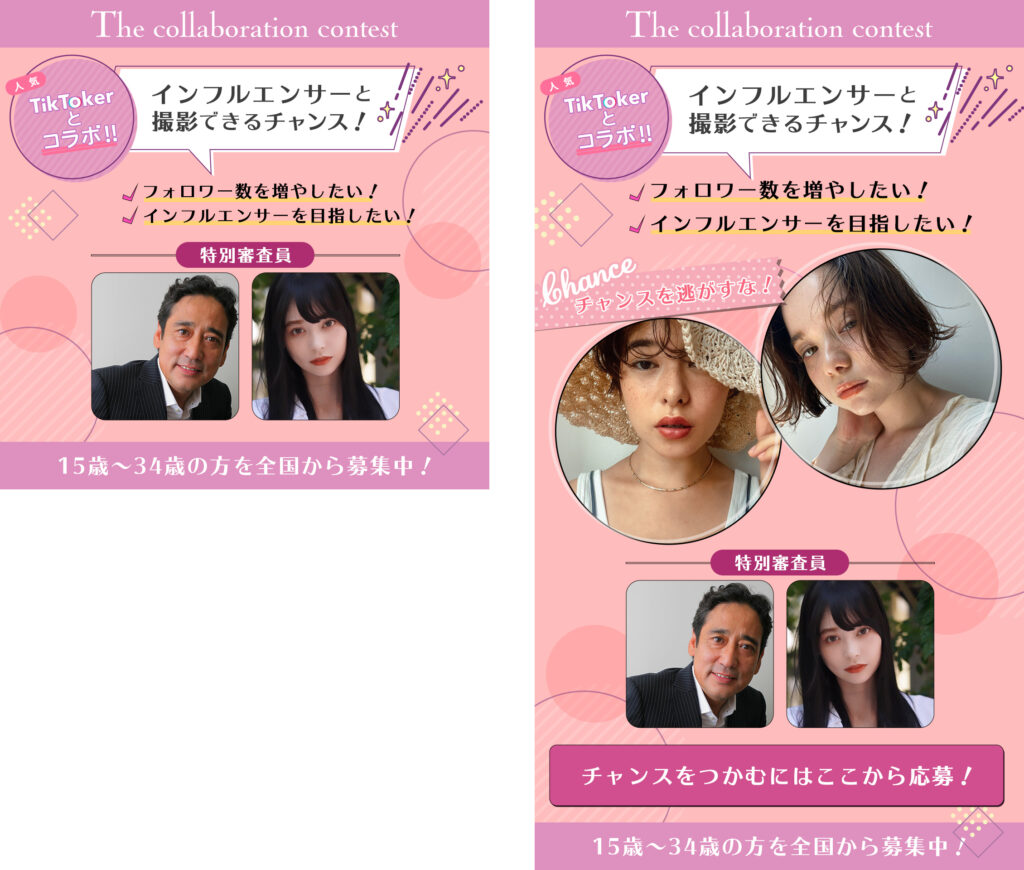 Instagram内で使用される広告バナー2種類