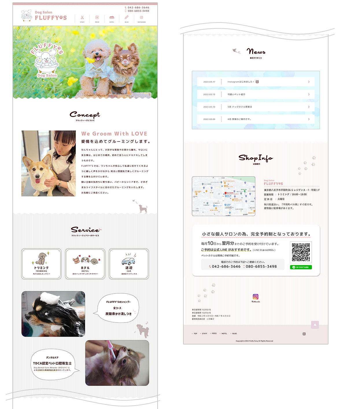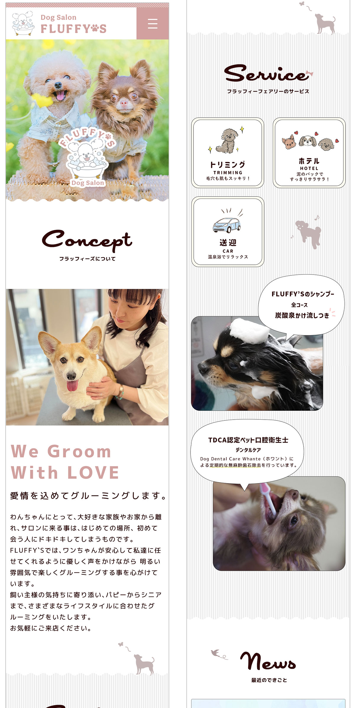ドッグサロンのWebデザイン。https://fluffy-fairy.com/